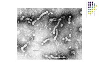 El documento describe las características de los virus de la hepatitis A, B, C, D y E. La hepatitis A es un picornavirus transmitido fecal-oralmente que generalmente causa una infección aguda y autolimitada. La hepatitis B es un hepadnavirus que puede causar infección aguda o crónica y se transmite a través de fluidos corporales. La hepatitis C es un flavivirus RNA que causa principalmente infección crónica y se transmite a través de la sangre. El virus de la hepatitis D solo infecta a personas con hepatitis B. La hepatitis E es un