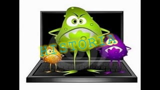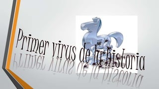 El primer virus informático se creó en 1972 y se llamó Creeper. Los virus se replican propagándose a través de software y tienen la capacidad de dañar sistemas o bloquear redes. A lo largo de los años se han creado muchos virus destacados como Michelangelo en 1992 y Good Times en 1994. Los virus, troyanos y gusanos son diferentes tipos de malware que pueden afectar la información y el funcionamiento de los ordenadores.