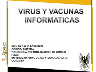 El documento trata sobre los virus informáticos, explicando su definición, modos de propagación, clases y el papel de los antivirus. Se destacan los efectos dañinos de diferentes tipos de virus, como troyanos y gusanos, y se ofrecen pautas sobre cómo prevenir y eliminar estas amenazas. Además, se presentan características y ejemplos de software antivirus populares en el mercado.