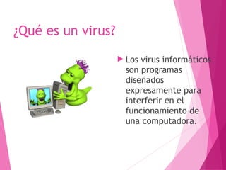 Este documento describe brevemente la historia y evolución de los virus informáticos desde su primera aparición en 1972 hasta la actualidad. Explica que los virus son programas diseñados para interferir en el funcionamiento de las computadoras y se transmiten principalmente a través de disquetes, descargas o correos electrónicos. También resume los diferentes tipos de virus como boot, macro, residentes, troyanos e internet.