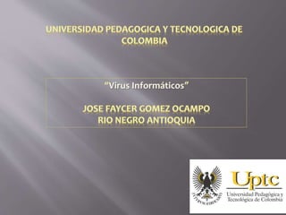 Este documento describe los virus informáticos, que son malware que alteran el funcionamiento de las computadoras sin el permiso del usuario. Los virus se propagan al reemplazar archivos ejecutables con versiones infectadas y tomar el control del sistema operativo para infectar otros archivos. Los virus pueden causar daños a los datos o sistemas, o simplemente ser molestos. Se replican a través de programas y redes, lo que puede causar pérdida de productividad u otros problemas.