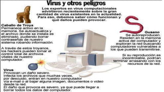 Los antivirus son programas que buscan prevenir, detectar y eliminar virus informáticos. Funcionan analizando archivos contra una lista de virus conocidos y sus firmas para identificarlos. Existen diferentes tipos como cortafuegos, antiespías y antispam que protegen contra amenazas específicas. La mejor protección incluye mantener software actualizado y educar a usuarios para prevenir infecciones.