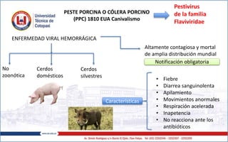Este documento resume los principales virus que afectan a los cerdos, incluyendo la Peste Porcina Clásica, Enfermedad de Aujeszky, Fiebre Aftosa y Síndrome Reproductivo y Respiratorio Porcino. Describe la etiología, distribución, transmisión, patogenia, signos clínicos y tratamiento de cada enfermedad viral. El documento provee información fundamental sobre los virus más importantes que afectan a la industria porcina a nivel mundial.