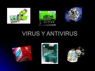 El documento describe diferentes tipos de virus informáticos como caballos de Troya, gusanos, virus de macros, virus de sobreescritura y virus mutantes. También explica qué es un antivirus, su función de prevenir y eliminar virus, y sus principales componentes como la vacuna que actúa de filtro, el detector que examina archivos, y el eliminador que desactiva y remueve virus para reconstruir archivos infectados.