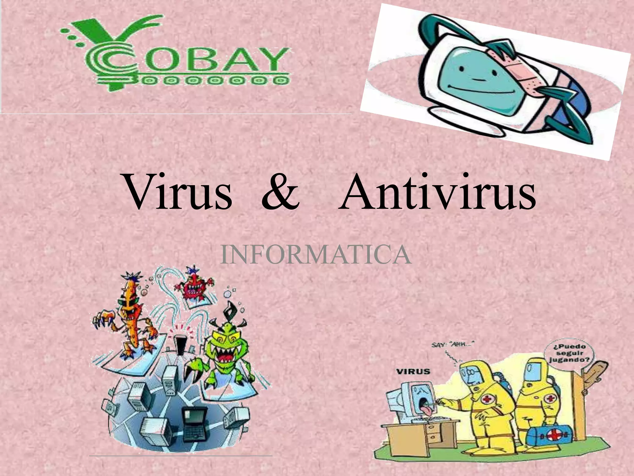 Este documento explica qué son los virus informáticos y los antivirus. Los virus son programas maliciosos que infectan computadoras para dañar o robar datos, y se propagan a través de archivos adjuntos, sitios web y USBs infectados. Los antivirus son programas diseñados para detectar, eliminar y prevenir virus, evolucionando para proteger contra nuevas amenazas como malware y spyware. Existen tres tipos de antivirus: preventores que monitorean sistemas, identificadores que detectan códigos maliciosos, y descontaminadores que elimin