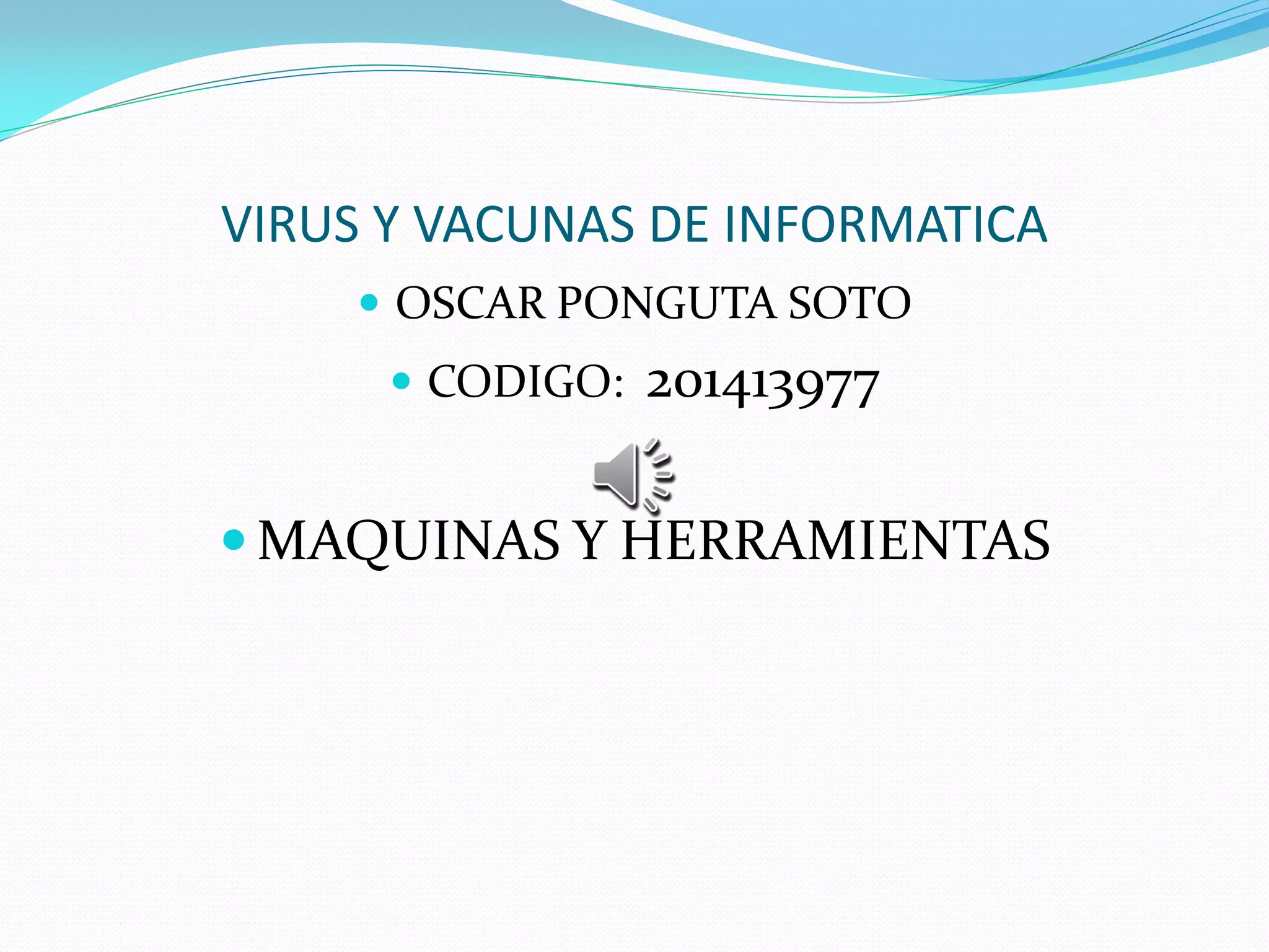 Este documento describe los virus informáticos, sus características y tipos principales como virus de boot, bombas de tiempo, gusanos, troyanos y virus de macro. También explica las vacunas como programas que intentan eliminar los virus una vez infectado el sistema operativo, pudiendo usarse vacunas USB cuando el virus ha bloqueado la mayoría de funciones. Se recomienda utilizar cortafuegos, ignorar archivos adjuntos sospechosos y mantener el sistema actualizado para evitar programas maliciosos.