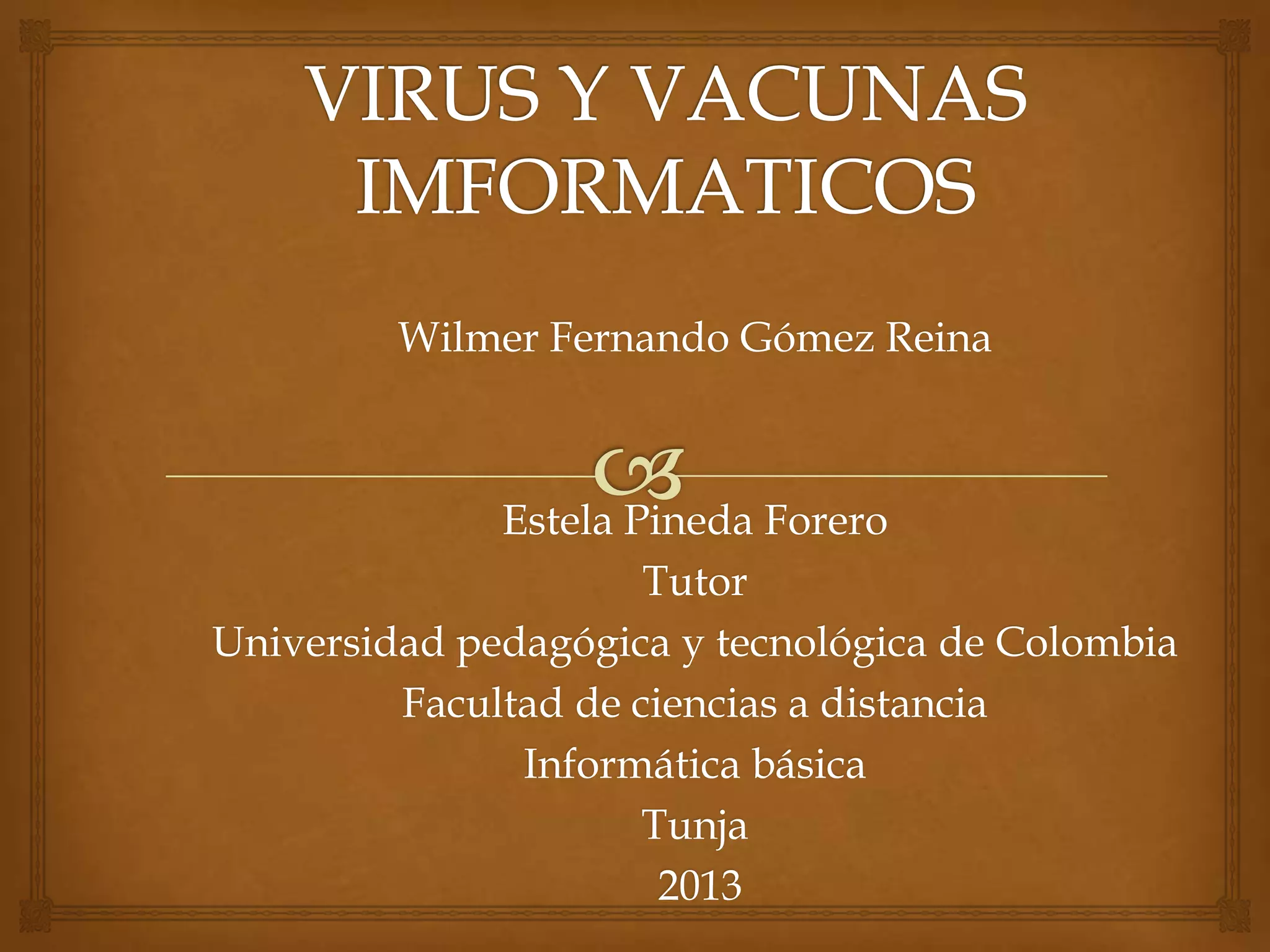Este documento resume información sobre virus informáticos. Explica qué son los virus, sus clases principales, cómo se propagan y cómo protegerse. También cubre qué hacer si se está infectado y los tipos de antivirus disponibles. Concluye enfatizando la importancia de estar informado sobre amenazas cibernéticas y formas de transmisión.
