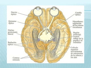 Los axones de las neuronas ganglionares llegan a la región pretectal, hipotálamo y colículo superior para dar origen a distintas respuestas reflejas.