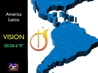 Este documento presenta la visión 20/20-6R de la Iglesia de Dios Latinoamericana. Propone integrar a Latinoamérica para cumplir la misión global a través de 6 prioridades: 1) renovar la visión global, 2) restaurar la esperanza plantando más iglesias, 3) revitalizar la iglesia, 4) re-educar la iglesia, 5) reflejar la gloria de Dios, y 6) responder en acción en diversas esferas. El objetivo final es que la iglesia latinoamericana participe activamente en la
