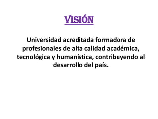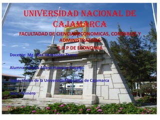 La Universidad Nacional de Cajamarca tiene una visión de convertirse en una universidad acreditada que forma profesionales de alta calidad académica, tecnológica y humanística para contribuir al desarrollo del país.