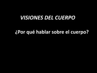 Este documento explora cómo la imagen del cuerpo humano ha variado a lo largo de la historia y entre diferentes culturas. Se mencionan ejemplos de representaciones del cuerpo de la antigüedad clásica, el Renacimiento, y épocas posteriores, y cómo cada período ha intentado establecer cánones de belleza. También discute cómo el cuerpo expresa emociones y cómo las personas lo han adornado a través del tiempo.