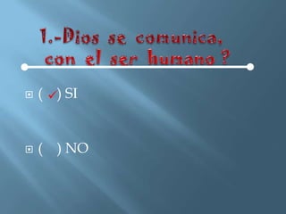 1) El documento habla sobre la comunicación directa e indirecta de Dios con el hombre, mencionando la Biblia y los profetas como formas de comunicación indirecta.