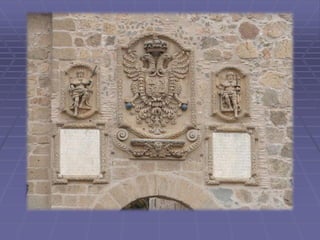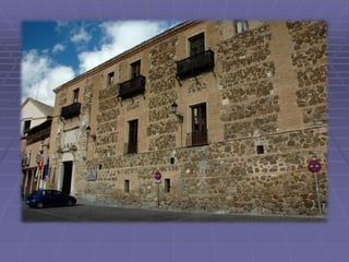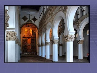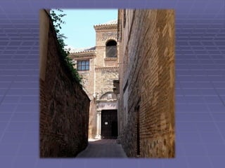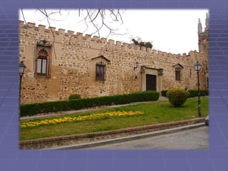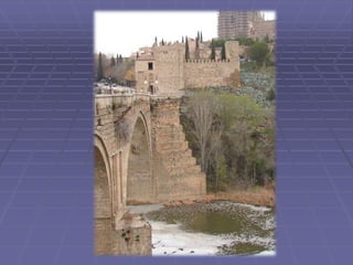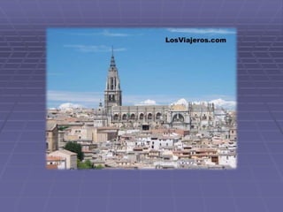 Este documento presenta una guía turística de la ciudad de Toledo, España, destacando varios lugares notables como la Catedral, el Puente de San Martín, San Juan de los Reyes, Santa María la Blanca, la Sinagoga del Tránsito, y la Casa Museo del Greco, además de varias leyendas asociadas con la historia y cultura de Toledo.