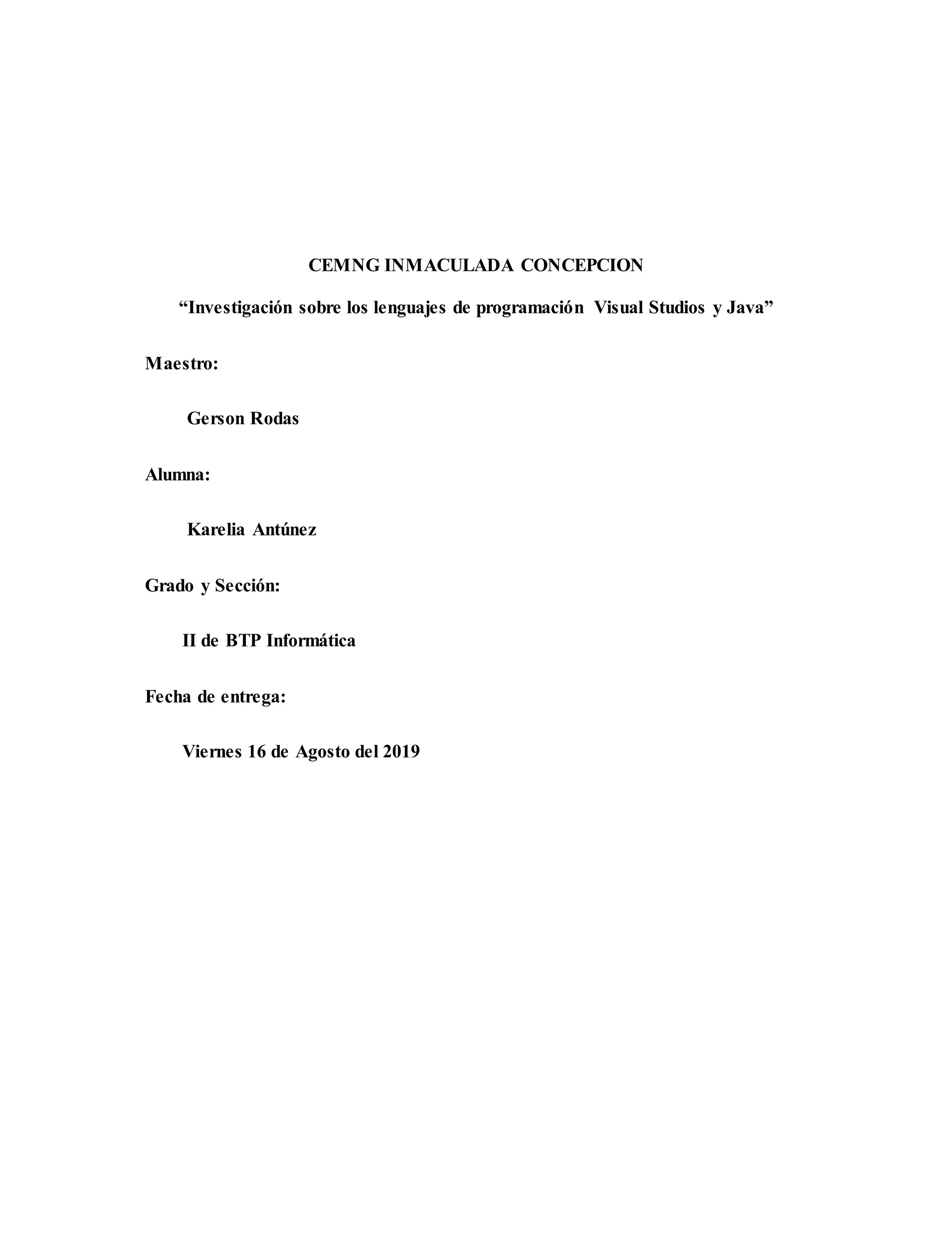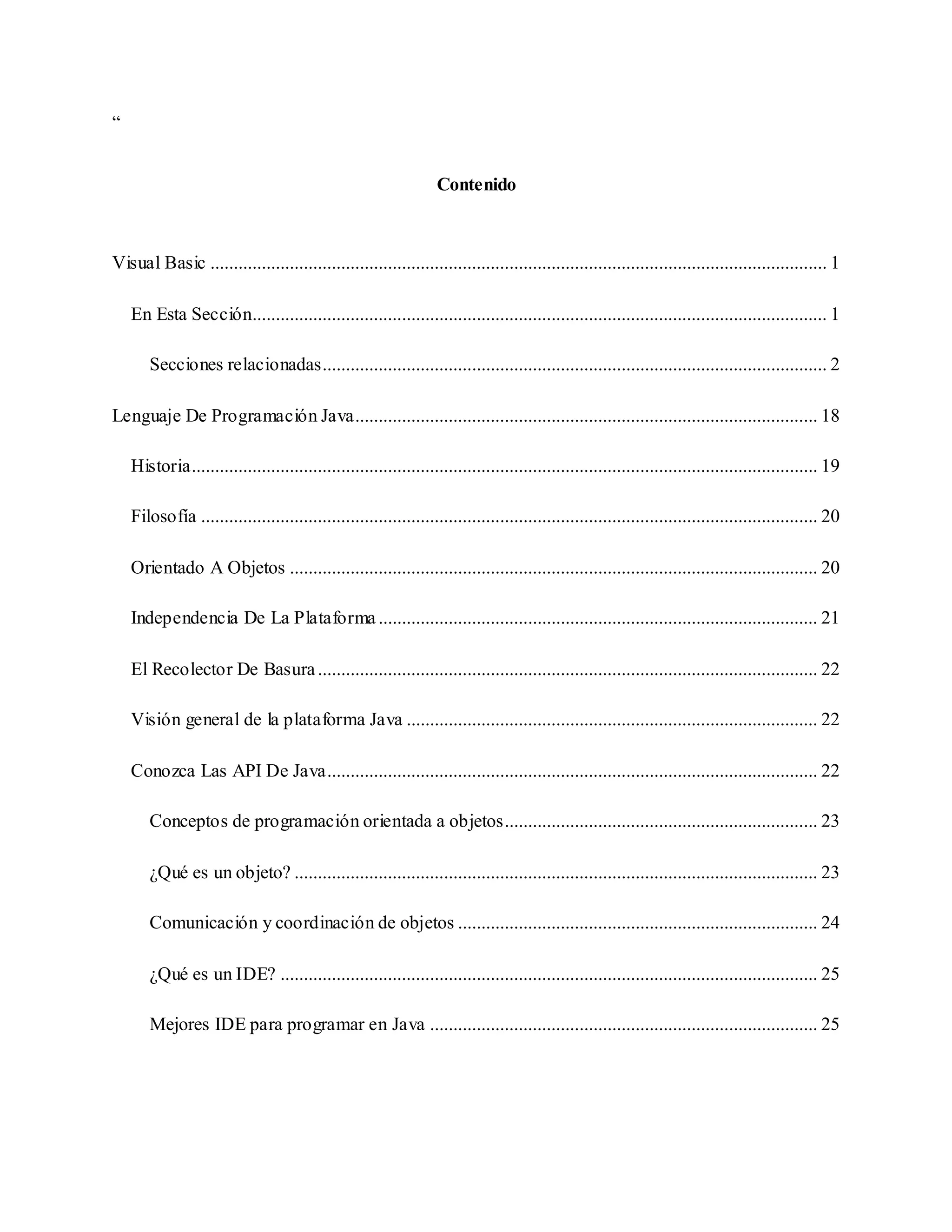 Este documento presenta una investigación sobre los lenguajes de programación Visual Basic y Java. Primero describe las características y secciones de Visual Basic, incluyendo controles como TextBox, Label y CommandButton. Luego explica la historia, filosofía y características de Java como su orientación a objetos, independencia de plataforma y recolector de basura. Finalmente, cubre conceptos de programación orientada a objetos en Java como objetos, comunicación entre objetos e IDEs.