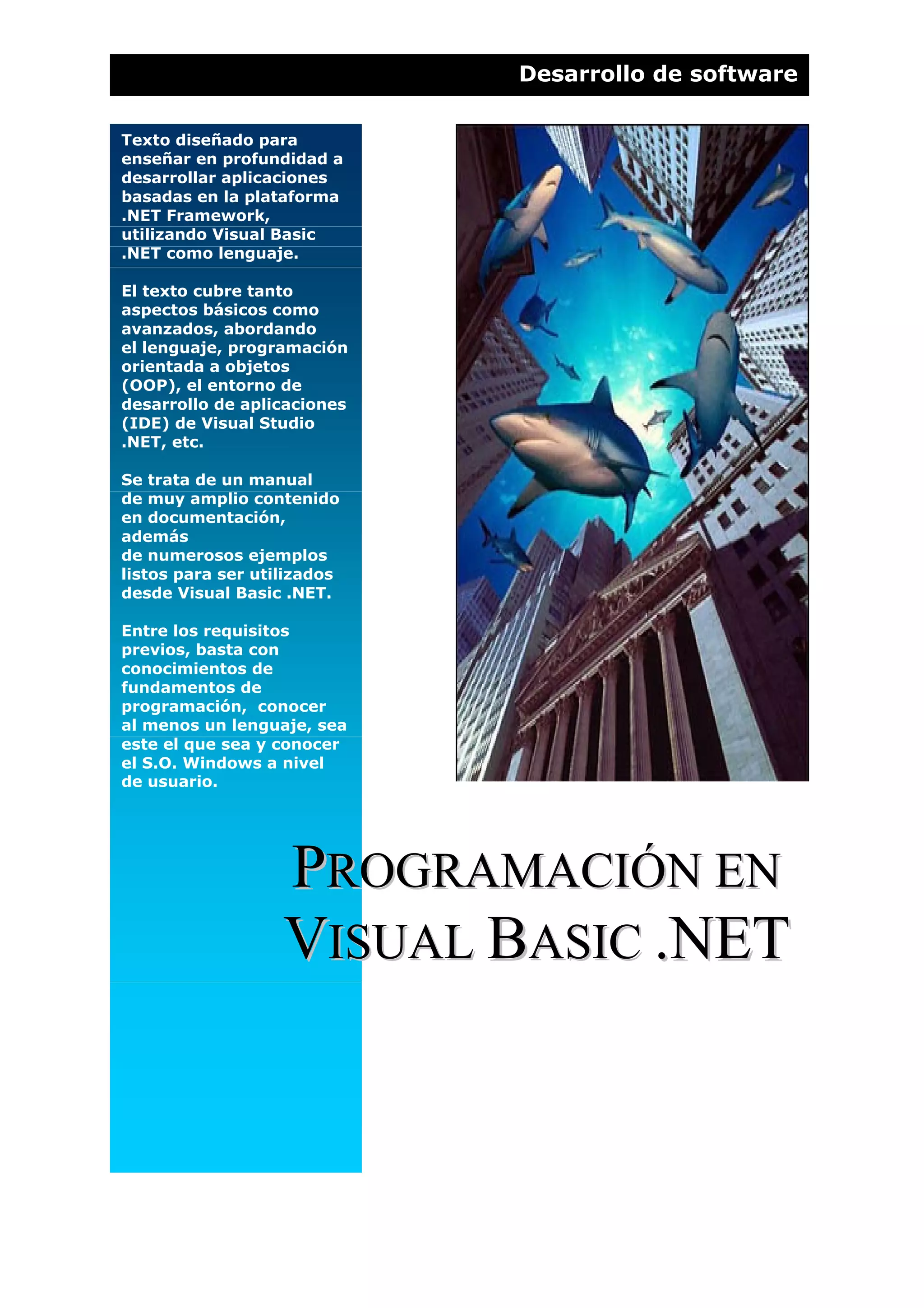 Este documento describe un texto para enseñar el desarrollo de aplicaciones con .NET Framework y Visual Basic .NET. Explica conceptos básicos y avanzados como el lenguaje, programación orientada a objetos, Visual Studio y más. Incluye numerosos ejemplos y es una guía completa con documentación. Se requieren conocimientos básicos de programación y Windows.