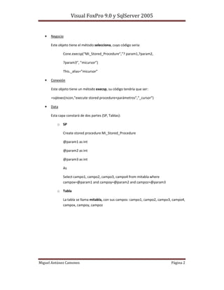 Este documento describe cómo crear procedimientos almacenados en SQL Server para realizar operaciones básicas de CRUD (crear, leer, actualizar, eliminar) en una tabla de clientes. Se definen procedimientos para seleccionar, insertar, editar y eliminar registros de clientes. También se muestran ejemplos de cómo crear índices únicos e índices no agrupados para mejorar el rendimiento de las consultas y garantizar la integridad de los datos. Finalmente, se explica cómo conectar una aplicación escrita en Visual Basic a