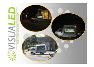 Los emprendedores ofrecen soluciones novedosas de publicidad utilizando tecnología como pantallas LED en camiones para mostrar imágenes y videos a grandes audiencias en zonas concurridas. Buscan satisfacer a los clientes con campañas personalizadas que generen un gran impacto visual y lleguen a más personas de manera moderna e innovadora.