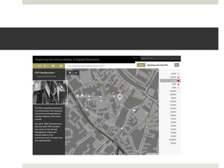 Este documento describe diferentes formas de visualizar datos para contar historias de manera efectiva. Explica que los recursos de visualización hacen que las historias complicadas sean comprensibles al darle significado a los números. Proporciona ejemplos como las campañas de "The Girl Effect" y el trabajo de Hans Rosling y Jonathan Harris para mostrar datos de una manera que permite a la audiencia entender la historia detrás de los números. También discute formatos comunes como mapas, gráficos y nubes de palabras, así como herramientas para crear visualiz