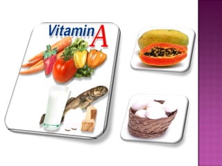 Las vitaminas son compuestos orgánicos necesarios en pequeñas cantidades para el metabolismo corporal. Existen vitaminas liposolubles como la A, D, E y K, y vitaminas hidrosolubles como las del complejo B y la C. Cada vitamina tiene una función distinta y deficiencias pueden causar diferentes enfermedades.