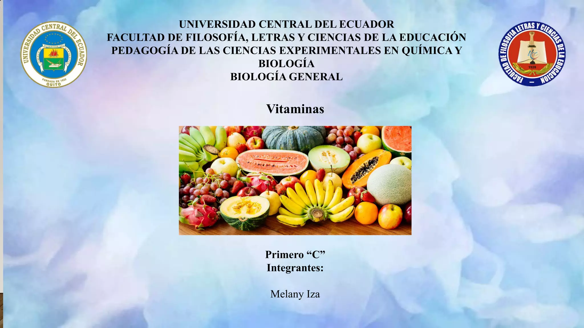 Este documento describe las vitaminas, incluyendo sus 13 tipos principales, sus funciones y fuentes. Explica que las vitaminas son indispensables para el funcionamiento del organismo y actúan como catalizadores en reacciones químicas que liberan energía. Se dividen en dos grupos: vitaminas hidrosolubles como la C y B que se absorben fácilmente pero deben ingerirse con frecuencia, y vitaminas liposolubles como A, D, E y K que se almacenan en el hígado y grasa pero no requieren ingestión frecuente