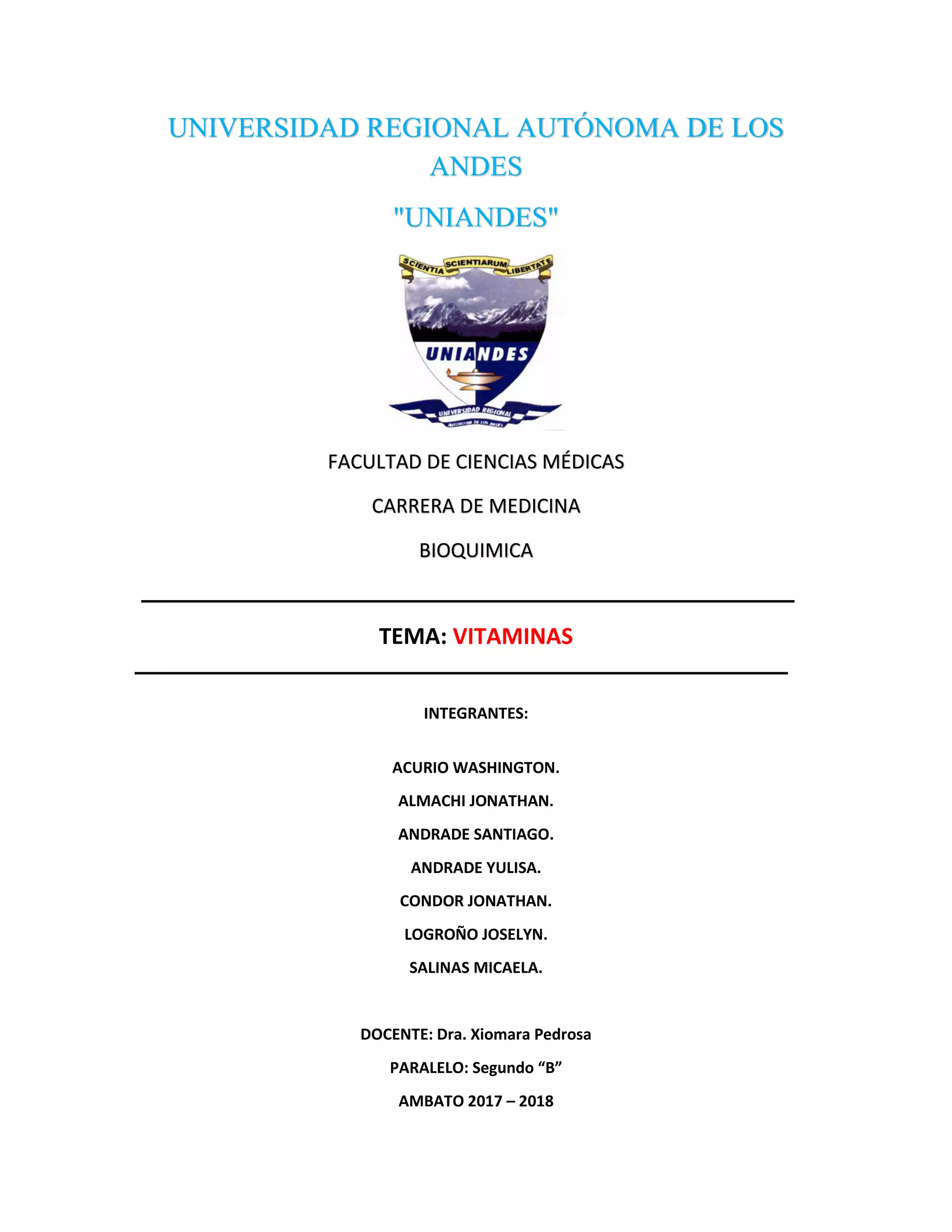 Este documento presenta información sobre las vitaminas. Comienza describiendo el descubrimiento de las vitaminas y su clasificación en liposolubles e hidrosolubles. Luego procede a definir cada vitamina liposoluble (A, D, E, K) y su concepto, absorción, síntesis y deficiencias asociadas. Igualmente define las vitaminas hidrosolubles (C, B1, B2, B3, B5, B6) con la misma información para cada una. El documento provee detalles sobre cada vitamina de manera individual.