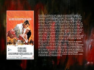 El documento describe el éxito comercial y de crítica de la novela Lo que el viento se llevó y su adaptación cinematográfica de 1939, que se ha convertido en uno de los grandes clásicos del cine y en una leyenda de la cultura popular del siglo XX.