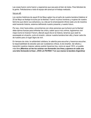 El documento narra los eventos del 25 de mayo de 1810 en Buenos Aires, cuando los criollos lograron formar una junta de gobierno patrio tras la renuncia del virrey Cisneros, presionado por las protestas populares que exigían un gobierno independiente mientras el rey de España estaba prisionero. La junta estuvo integrada por criollos y marcó el inicio del proceso de independencia de la Argentina del dominio español.