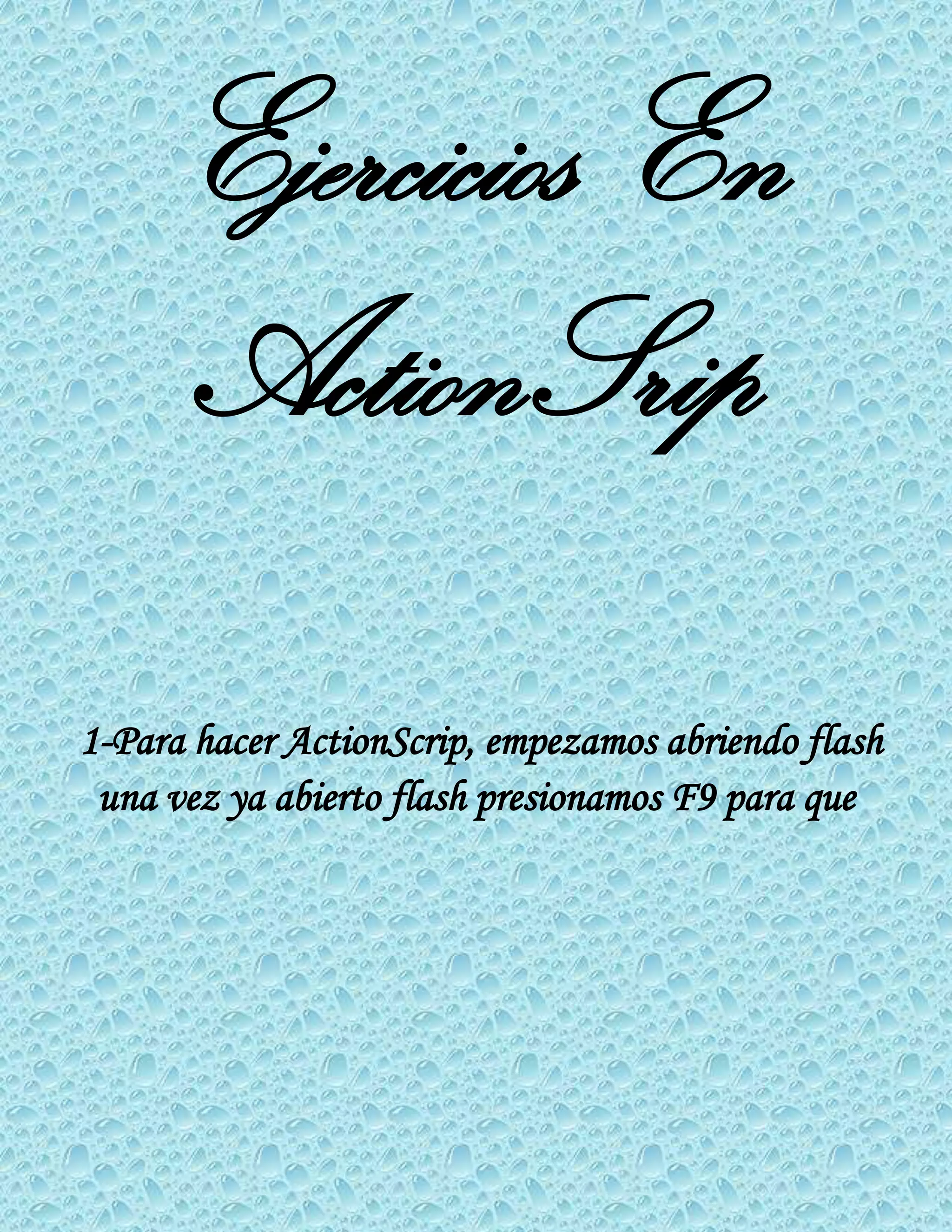 Este documento proporciona instrucciones para crear resúmenes en ActionScript: (1) Abrir Flash y presionar F9 para abrir la ventana de acciones, (2) Escribir código de ActionScript usando la palabra clave "var" para declarar variables, (3) Ejecutar el código con Ctrl + Enter para ver los resultados. También explica cómo crear objetos y manipular sus propiedades mediante ActionScript.