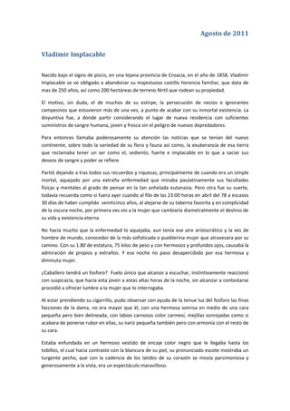 Vladimir Implacable, un vampiro nacido en 1858 en Croacia, se ve obligado a abandonar su castillo por la persecución de campesinos ignorantes. Al llegar a un nuevo continente, se encuentra con Mirna, una mujer enigmática que le transforma en un ser inmortal tras un encuentro intenso y peligroso. Tras aceptar su 'regalo', Vladimir se convierte en un vampiro sediento de sangre, dándose cuenta de su nueva realidad y la necesidad de encontrar a Mirna para entender lo que le ha ocurrido.
