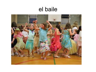 El documento lista varias actividades de tiempo libre populares como el baile, los conciertos, ir de camping o pesca, y deportes como el baloncesto, béisbol, fútbol, golf y tenis. También incluye opciones para describir cómo se siente una persona, como cansado, contento, enfermo, mal, ocupado o triste.
