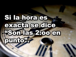 El documento describe una serie de eventos que ocurren a lo largo del día, comenzando a las cuatro de la mañana y terminando a las tres de la tarde. Se mencionan varias horas como las once, las doce y la una, así como visitar un blog.