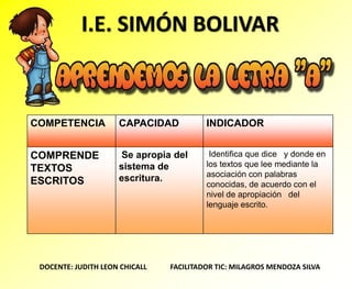 DOCENTE: JUDITH LEON CHICALL FACILITADOR TIC: MILAGROS MENDOZA SILVA