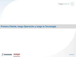 El documento describe las principales consideraciones para una empresa de contact center. Primero, el enfoque debe estar en el cliente, luego en las operaciones y por último en la tecnología. La tecnología solo es una herramienta que ayuda a gestionar los servicios y las interacciones con los clientes, pero no debe ser el enfoque principal. Se discuten también las tendencias actuales como la convergencia de canales, la evolución a SIP y los servicios web, así como el autoservicio basado en internet.