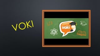 Voki es un programa que permite a los usuarios crear su propio personaje animado personalizable, ya sea famoso, animal u otro personaje. Ofrece ventajas como facilitar la animación y aprendizaje de idiomas, aunque tiene la desventaja de limitar el tiempo de voz y texto del personaje creado a menos de un minuto.