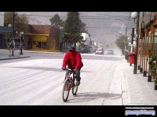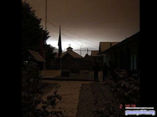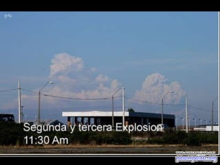 El documento habla sobre el volcán Chaitén en Chile que entró en erupción. Menciona que el volcán está ubicado en la Región X de Chile, cerca de la localidad de Chaitén. También incluye fotos del volcán en erupción y una tormenta eléctrica sobre él, así como datos sobre la distancia entre Esquel en Argentina y el volcán. El documento invita a compartir la presentación con otros e incluye un enlace para suscribirse a más presentaciones gratis.
