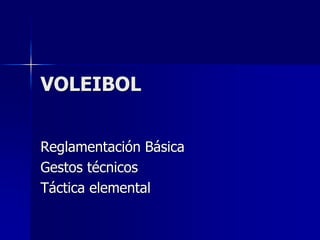 El documento describe la historia y reglas básicas del voleibol. El voleibol fue creado a finales del siglo XIX en Estados Unidos por William Morgan como una alternativa menos violenta al baloncesto. Rápidamente se extendió por Norteamérica y otros países como Japón y España. El objetivo del juego es golpear el balón por encima de la red para que caiga en el campo contrario tras un máximo de tres toques por equipo.