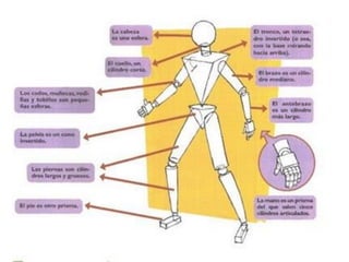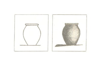 El documento explica que cualquier tema a dibujar se puede descomponer en formas geométricas simples como círculos, triángulos y paralelepípedos. Al descomponer figuras complejas en estas formas básicas, se facilita el dibujo rápido y exacto. También señala que el volumen y las sombras son aspectos importantes para representar los objetos en tres dimensiones.