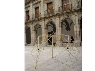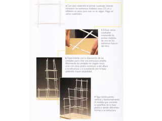 El documento describe 4 proyectos para un curso sobre la generación de volúmenes tridimensionales abstractos. El primer proyecto involucra el plegado y doblez de cartulinas para crear volúmenes. El segundo proyecto implica el uso de alambre para crear esculturas. El tercer proyecto usa palillos para construcciones geométricas abstractas. El cuarto proyecto involucra esculturas cinéticas con elementos rítmicos repetitivos. Cada proyecto incluye referencias a artistas relevantes.
