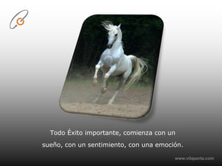 El documento enfatiza la importancia de los sueños y emociones en el camino hacia el éxito. Invita a las personas a retomar sus sueños y emociones para encontrar maneras de materializarlos. Es un llamado a 'volver a empezar' en la búsqueda de objetivos personales.