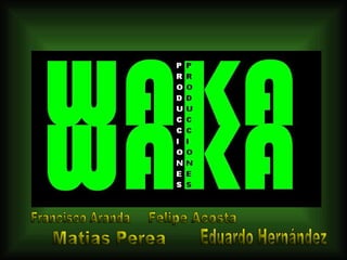 Waka Waka Producciones es una empresa de asesoría y producción de eventos a lo largo de Chile que ofrece ideas para organizar fiestas soñadas. La compañía usa principalmente internet para promocionarse y establecer relaciones duraderas con clientes y proveedores. Waka Waka Producciones cuenta con un gran sistema de audio e iluminación, DJs reconocidos y diferentes opciones de entretenimiento para eventos sociales y empresariales como cumpleaños, despedidas y bodas.