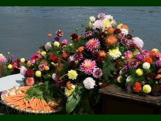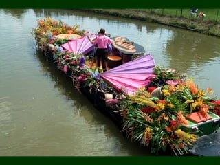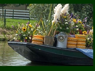 El documento habla sobre el mercado flotante en Holanda. Brevemente describe que en Holanda existen mercados flotantes sobre canales y ríos, donde la gente puede comprar y vender productos. Les desea a todos un feliz día.