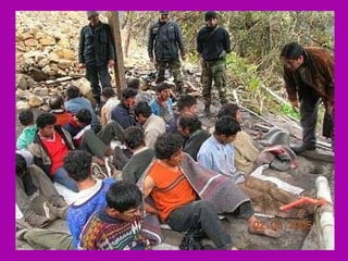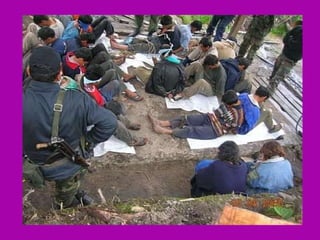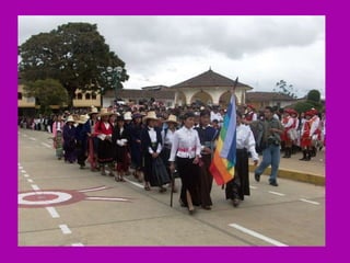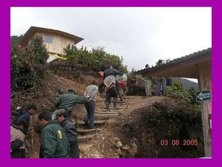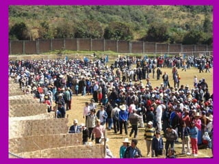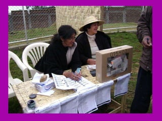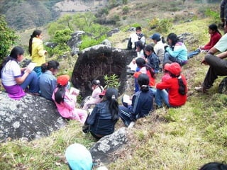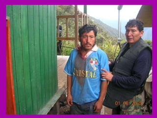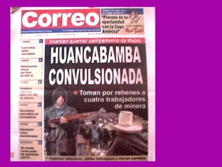 El documento describe la rica biodiversidad de la región de Ayavaca en Perú, incluyendo sus ecosistemas, especies de flora y fauna, y sitios arqueológicos. También detalla la oposición de la comunidad local a la minería debido a la contaminación ambiental y enfrentamientos violentos, así como el resultado abrumadoramente en contra de la minería en una consulta popular.