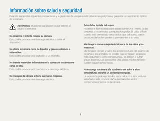 Este manual del usuario contiene instrucciones detalladas para el uso seguro y efectivo de la cámara. Proporciona información sobre funciones básicas y avanzadas, ajustes, solución de problemas y especificaciones. El usuario debe leer el manual cuidadosamente para operar la cámara de forma segura y sacar el máximo provecho a sus funcionalidades.