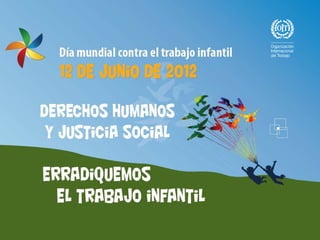 El documento exhorta a la ratificación universal de los convenios de la OIT sobre el trabajo infantil, la adopción de políticas nacionales para combatir el trabajo infantil de manera efectiva, y el impulso de iniciativas para ampliar el movimiento mundial contra el trabajo infantil. También describe cifras sobre el trabajo infantil, los convenios de la OIT sobre el tema, y la necesidad de garantizar el acceso a la educación y la protección social para erradicar el trabajo infantil.