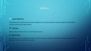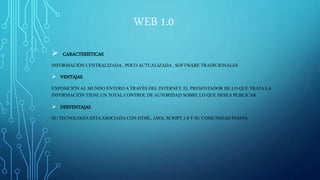 La Web 1.0 se caracterizó por tener información centralizada y poco actualizada, mientras que la Web 2.0 trajo información