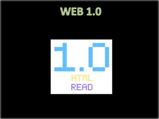 El documento describe la evolución de la web desde la Web 1.0 hasta la propuesta de Web 4.0. La Web 1.0 permitía solo lectura de páginas estáticas, mientras que la Web 2.0 facilitó la interacción y colaboración entre usuarios. Se propone que la Web 3.0 use inteligencia artificial y semántica para integrar mejor la información, y la Web 4.0 proponga un sistema operativo virtual accesible, actualizable e indexable.