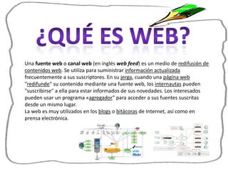 El documento describe las características de la web 1.0, web 2.0 y web 3.0. La web 1.0 permitía a los usuarios acceder a contenido de forma pasiva, mientras que la web 2.0 facilita la colaboración y creación de contenido entre usuarios. La web 3.0 se refiere a la evolución hacia una red semántica e inteligencia artificial.