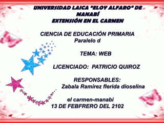 El documento habla sobre temas relacionados con la web como medios de difusión de contenido, servicios de sitios web, características de sitios web 2.0 que permiten interacción de usuarios, la evolución del uso de internet, y Microsoft Expression Web como editor de páginas web.