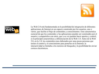 El documento describe la evolución de la Web de 1.0 a 2.0, donde los usuarios ahora pueden crear y compartir contenido fácilmente. Esto ha llevado a cambios sociales significativos, con los usuarios analizando temas e influyendo en la política. El periodismo también se ha visto afectado, con los usuarios generando y compartiendo noticias en lugar de solo consumirlas.