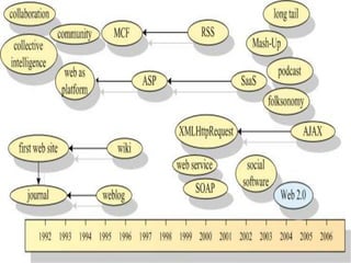 Un sitio web 2.0 permite a los usuarios interactuar y colaborar generando contenido. Facilita el compartir información, la interoperabilidad y la colaboración entre usuarios. Ejemplos incluyen comunidades web, redes sociales, wikis y blogs. El término fue acuñado por Dale Dougherty para describir una nueva generación de sitios web que facilitan la participación de los usuarios.